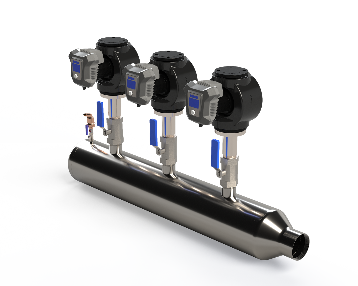 Includes two ball valves for quick isolation and 4″ NPT-threaded inlet. -