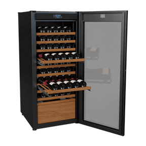 Handcrafted by European wine cabinet experts and delivered fully assembled and ready to set up, the cabinet features configurable shelving that can be mixed and matched to suit your collection’s layout preferences. It automatically maintains ideal humidity levels between 55%–65% relative humidity for proper wine preservation.