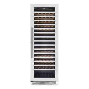 Elevate your wine storage experience with the Cavavin Vinoa 24" 163-Bottle Wine Cooler — a beautifully engineered cellar that blends luxury, performance, and versatility. Ideal for passionate collectors, this premium stainless-steel unit can be installed as a built-in centerpiece or showcased as a freestanding statement. A grey-tinted, UV-protected seamless glass door protects your collection while offering a clear view of your labels, enhanced by low-emissivity LED lighting that can be set to automatic or continuous illumination. Intuitive one-touch LED digital controls allow precise temperature management, making it easy to maintain ideal conditions for your favorite red or white wines in its single-zone cooling chamber.