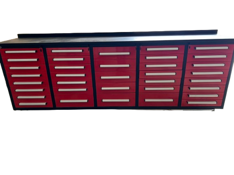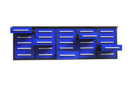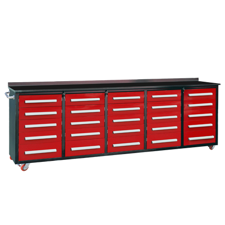 Chery Industrial 10’ Rolling Storage Workbench with 25 Drawers and Wheels