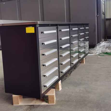 Chery Industrial 10’ Storage Cabinet with 35 Drawers Heavy‑Duty Tool Workbench