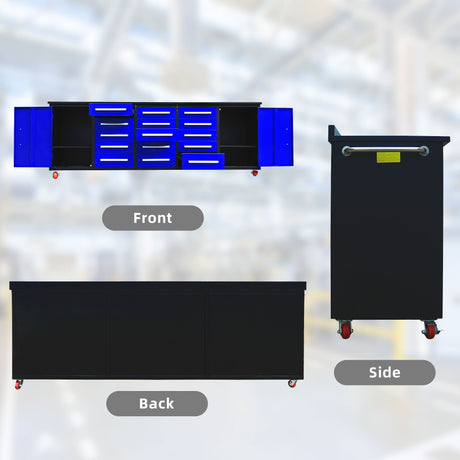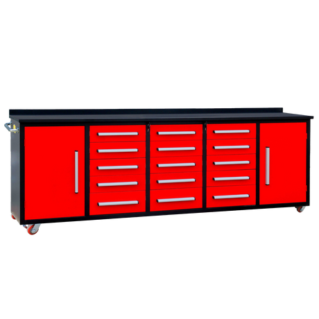 Chery Industrial 10’ Rolling Storage Workbench with 15 Drawers and Wheels