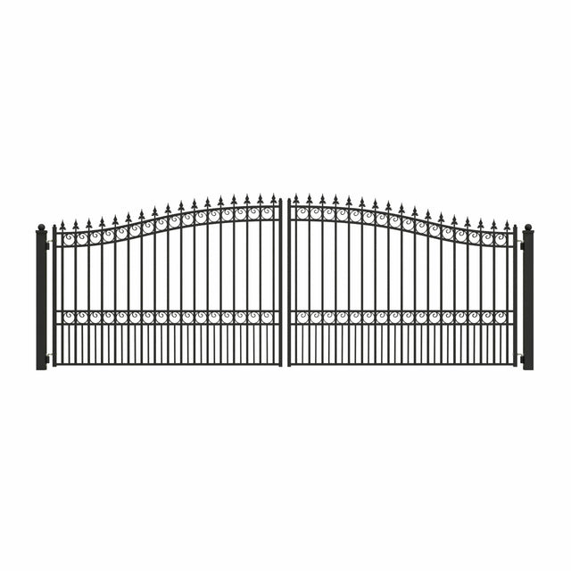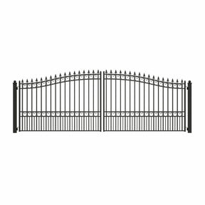 Installation is simplified with pre‑hung gate panels and included hardware, helping streamline setup and reduce installation time. Reinforced framework and precision welding further enhance stability and rigidity, supporting consistent operation through changing weather conditions. Whether used to define a driveway entrance or secure a property perimeter, this steel dual swing gate blends aesthetic appeal with practical durability.
