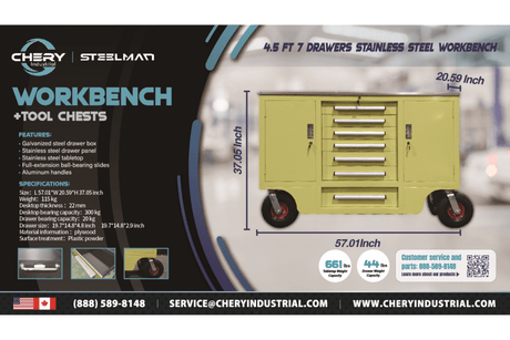 Chery Industrial 4.5ft Heavy Duty Mobile Workbench with 7 Drawers & 2 Cabinets