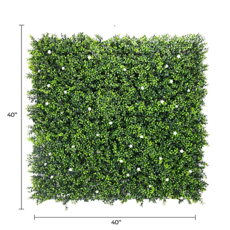 Designer Plants USA White Flowering Artificial Boxwood Wall 40" x 40" Commercial Grade