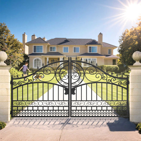 Chery Industrial 18’ x 6’ Steel Dual Swing Driveway Gate Paris‑Style