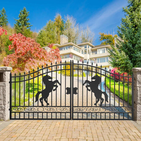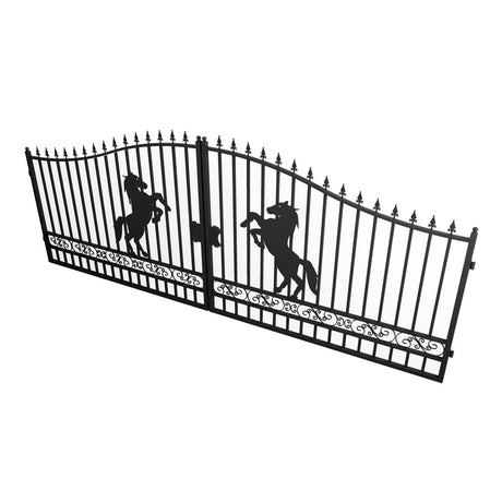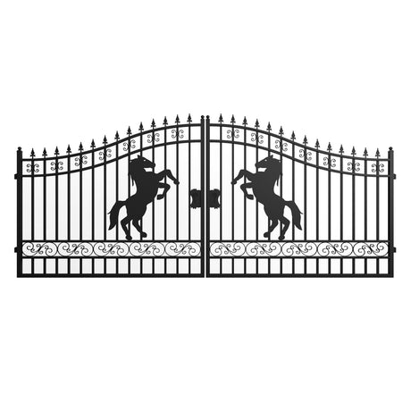 Chery Industrial 16x8 ft Steel Dual Swing Driveway Gate with Horse Pattern