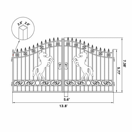 Chery Industrial 14x8 ft Steel Dual Swing Driveway Gate with Horse Pattern
