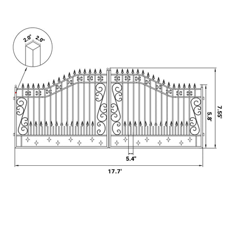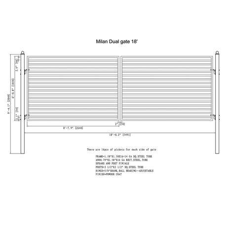 Chery Industrial 18'x6' Steel Dual Swing Driveway Gate - MILAN Style