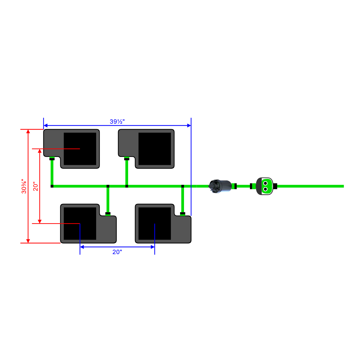 Alien Hydroponics EasyFeed 4 Pot 2 Row Kit