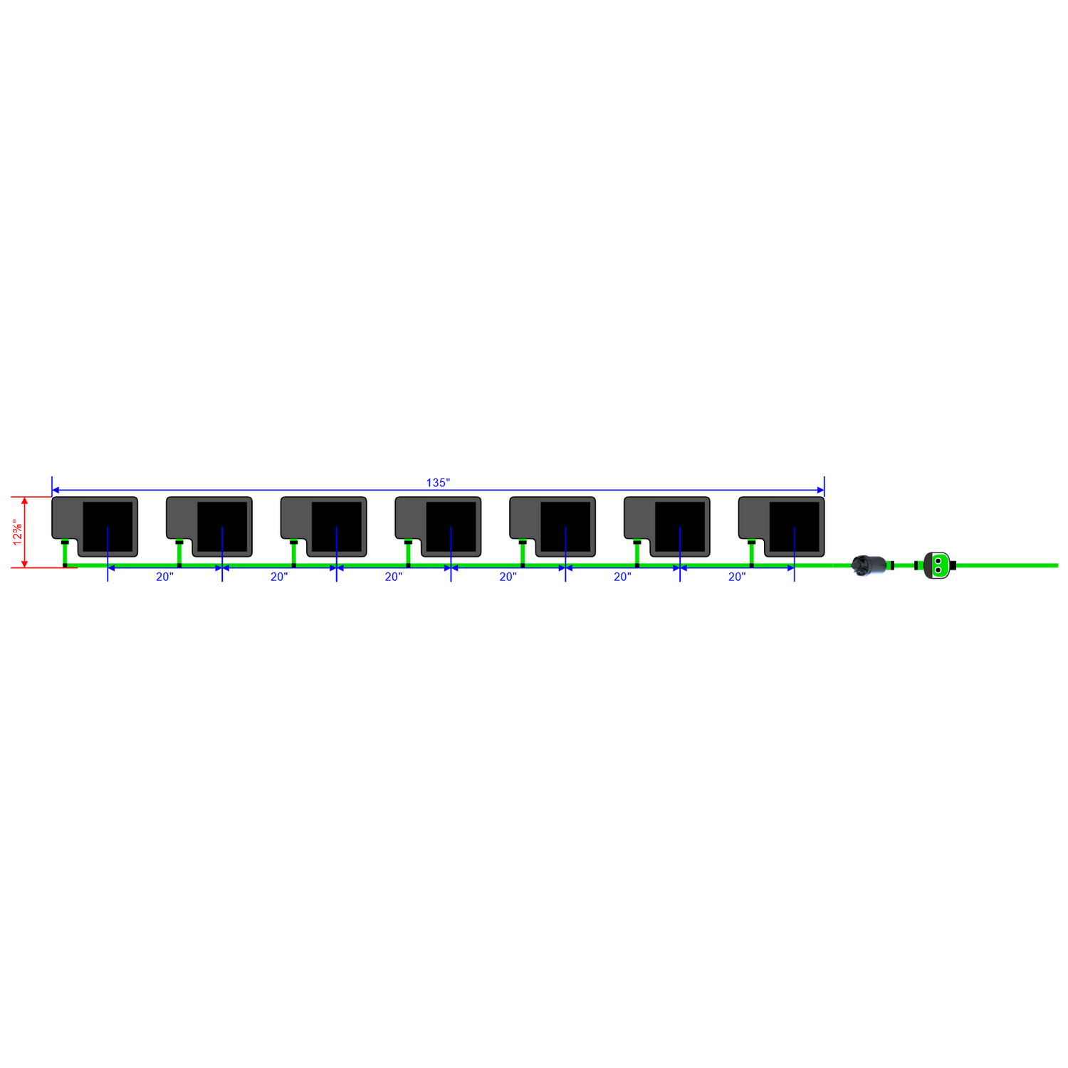 135" (L) x 12⅜" (W) |