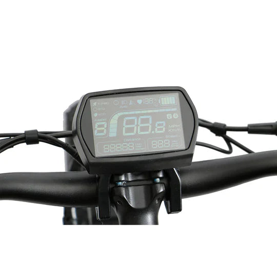 LCD display showing speed, battery life, and pedal-assist level