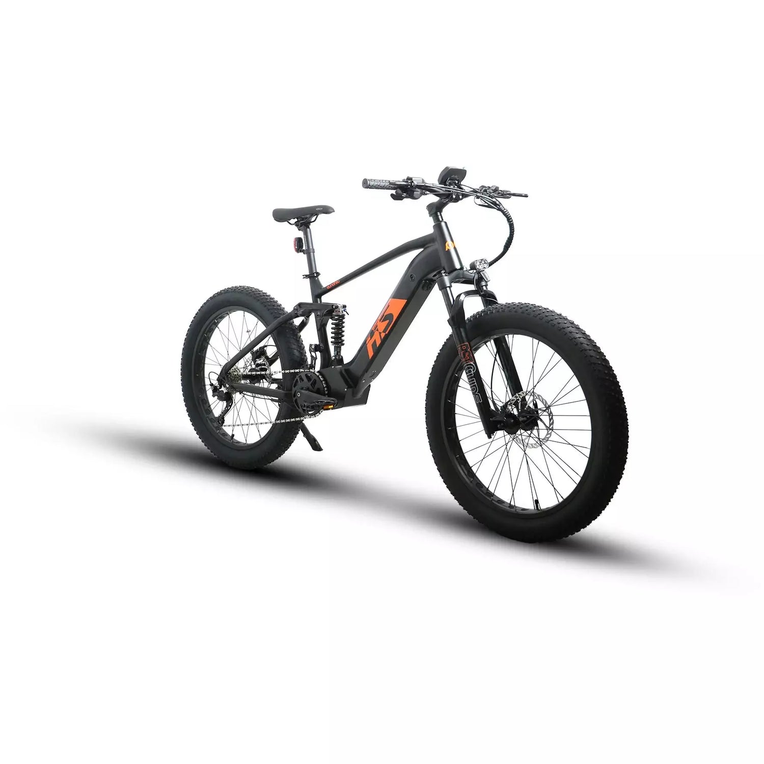 The full suspension aluminum frame absorbs bumps and maintains stability over rough terrain, while 26" × 4.0" Kenda Krusade Sport fat tires provide superior traction and control on sand, gravel, snow, and mud. Coupled with hydraulic disc brakes and a 9-speed Shimano/SunRace drivetrain, the FAT‑HS ensures safe, smooth, and efficient rides in varied conditions.