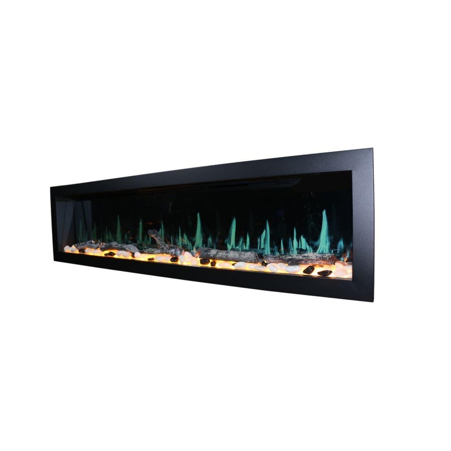 Installation is flexible, with the unit capable of being fully recessed, flush mounted, or wall‑mounted to suit your space and design preferences. Front trim access and vent‑free operation make setup and maintenance straightforward, while included accessories such as driftwood logs, river rocks or reflective glass media, mounting brackets, and a remote provide a complete solution right out of the box.