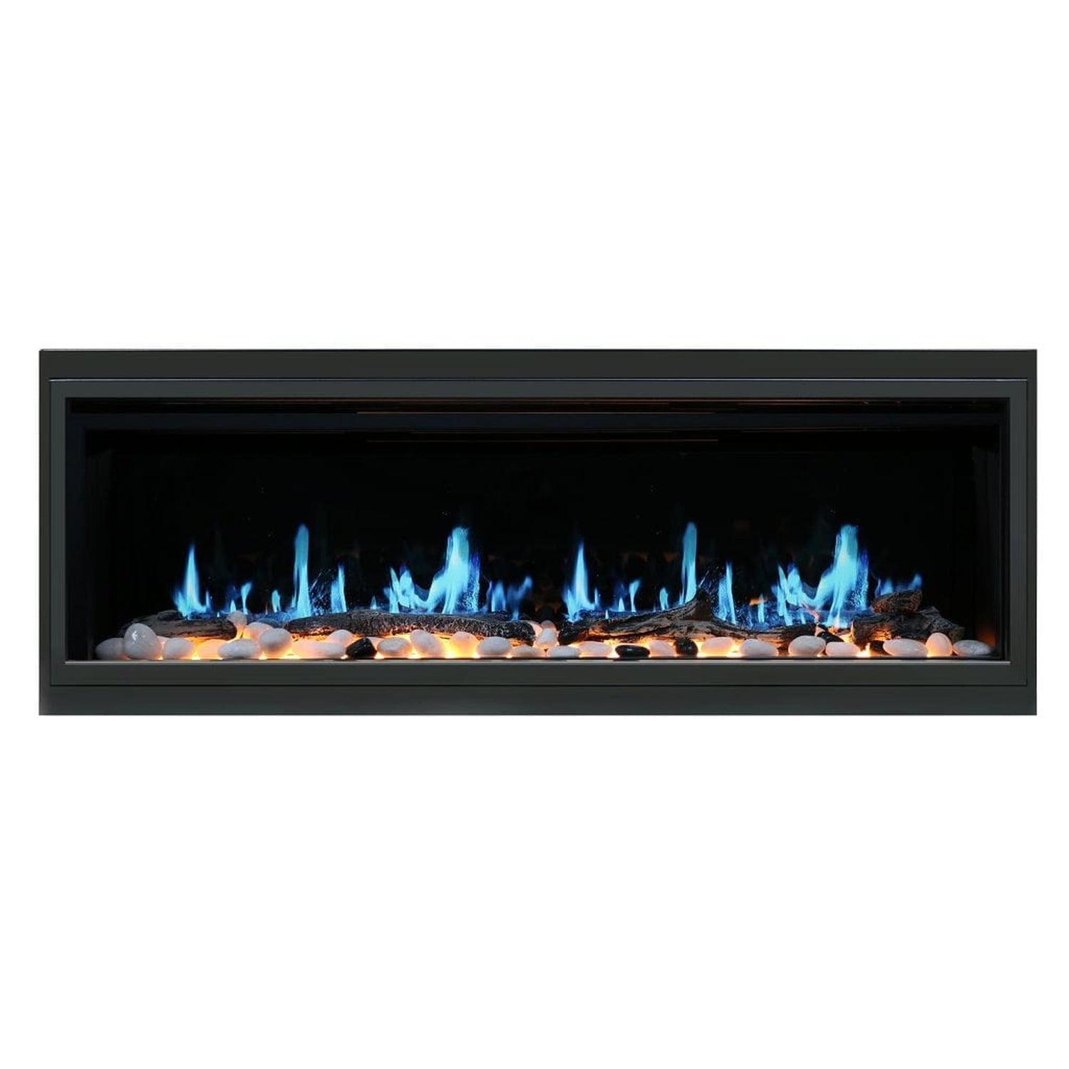 Powered by GT-Xview HD LED multi-flame technology, the Latitude 65 delivers vivid flame visuals with five flame color options and ambient top lighting for a realistic fireplace effect. The look can be customized further with driftwood logs and natural river rocks, allowing the fireplace to complement a variety of décor styles.