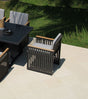 The Horizon Dining Armchair combines contemporary coastal styling with premium outdoor performance. Featuring a powder-coated carbon aluminum frame with vertical polystrand strap detailing and warm natural teak armrests, this chair delivers visual appeal and ergonomic support. The included Sunbrella cushion adds plush, weather-resistant comfort, making it ideal for extended outdoor dining in residential or hospitality settings.