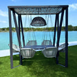 Skyline Design Horizon 8FT Pergola with Lamp, Rodona Hanging Chairs & Aluminum Table
