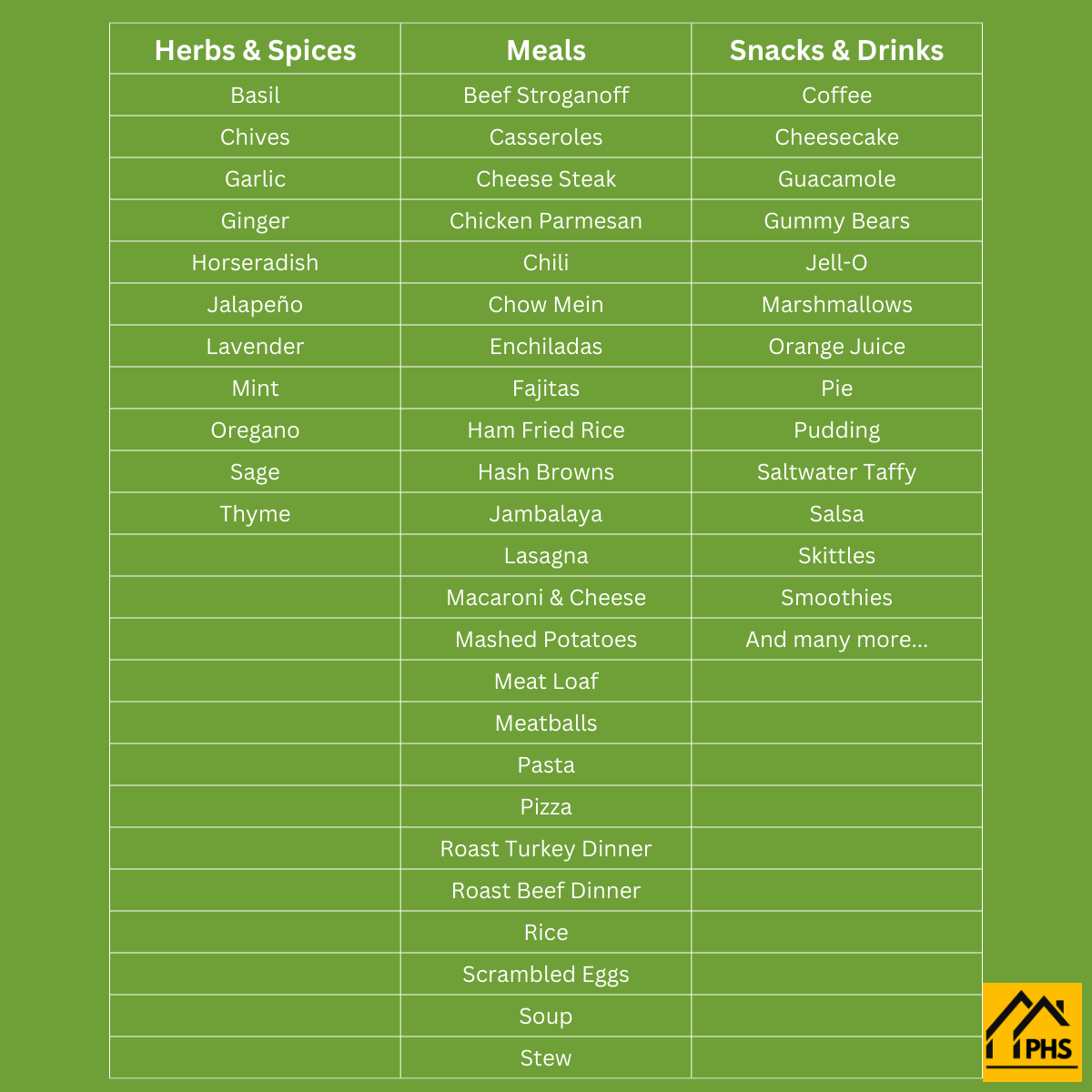 | Fresh Food Per Year | Up to 3000 lbs. |