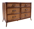 Bring a touch of tropical elegance to your bedroom with the Palm Island six-drawer dresser. The dresser features a stunning blend of rattan woven weave and pencil rattan poles that are bound together with leather, finished in a rich antique two-tone color. The result is a timeless and exotic piece that will transform your bedroom into a paradise oasis. With six spacious drawers, this dresser is perfect for storing your clothes and accessories. The glass top adds a touch of sophistication while protecting the dresser from scratches and wear. Make a statement in your bedroom decor with the Palm Island six-drawer dresser.