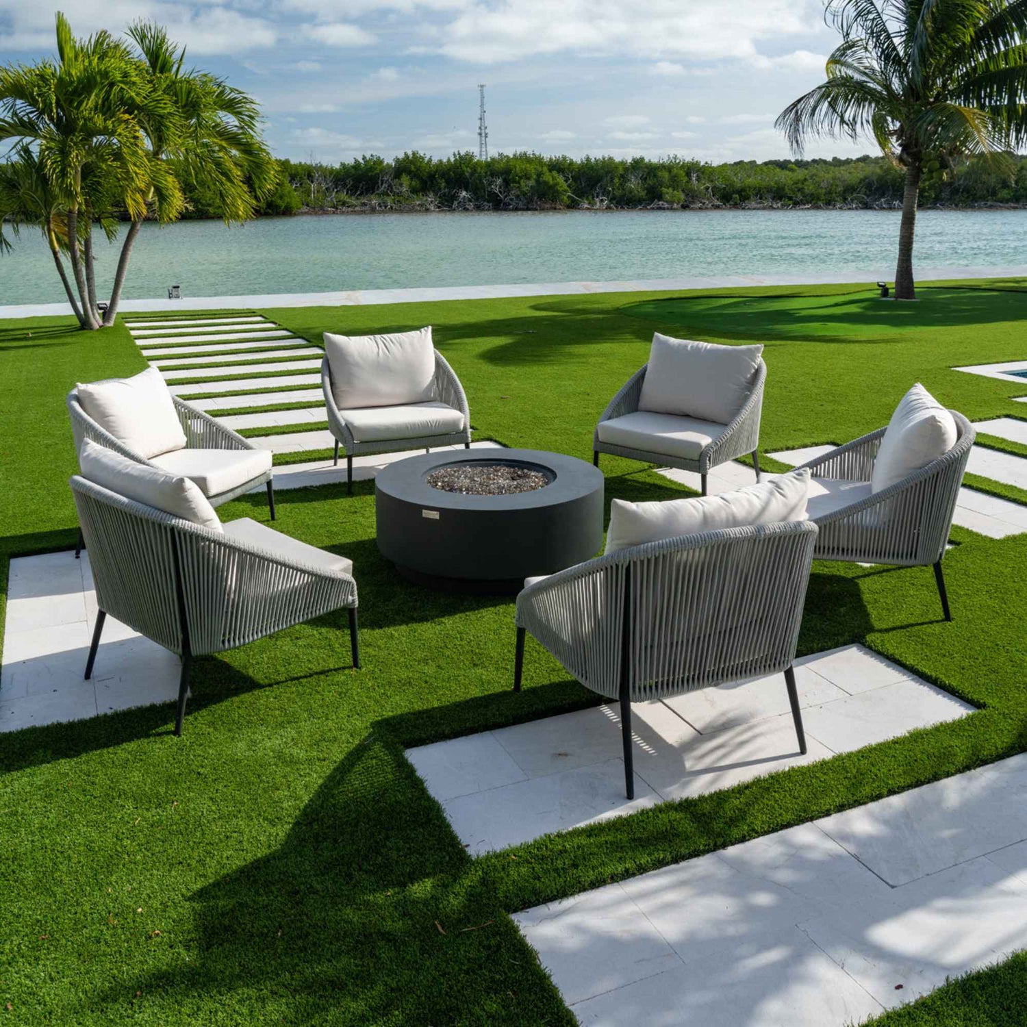 Elevate your outdoor space with the clean lines and refined texture of the Rodona Armchair. Wrapped in handwoven polystrand rope over a sleek powder-coated aluminum frame, this modern silhouette blends durability with striking design. Ideal for patios, poolside lounges, or garden seating areas, the Rodona Armchair offers a fresh take on contemporary outdoor living.