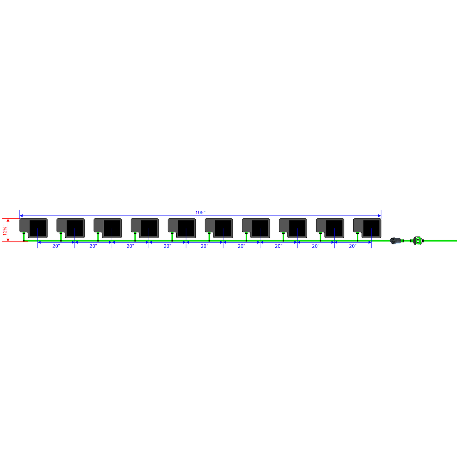 195" (L) x 12⅜" (W) |