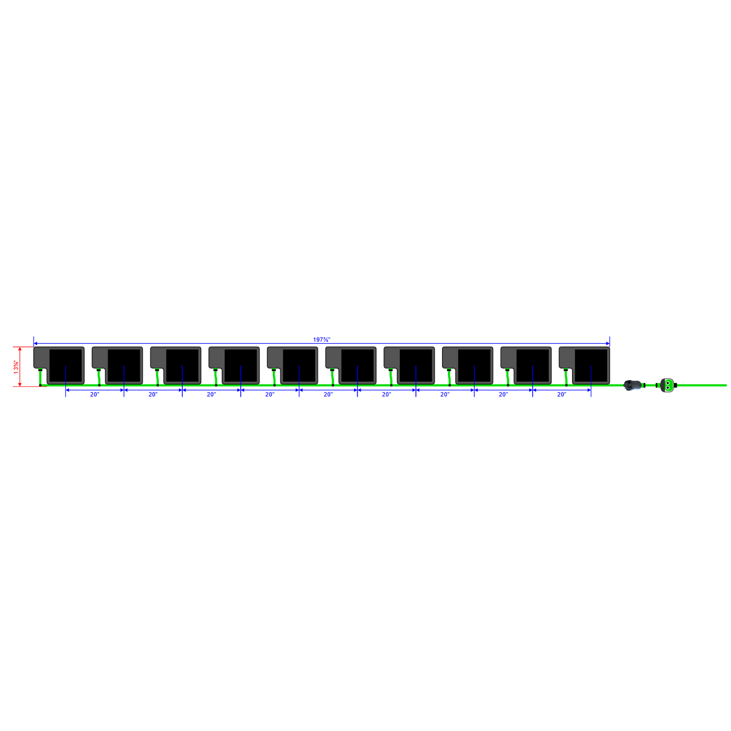 173¼" (L) x 13⅝" (W) |