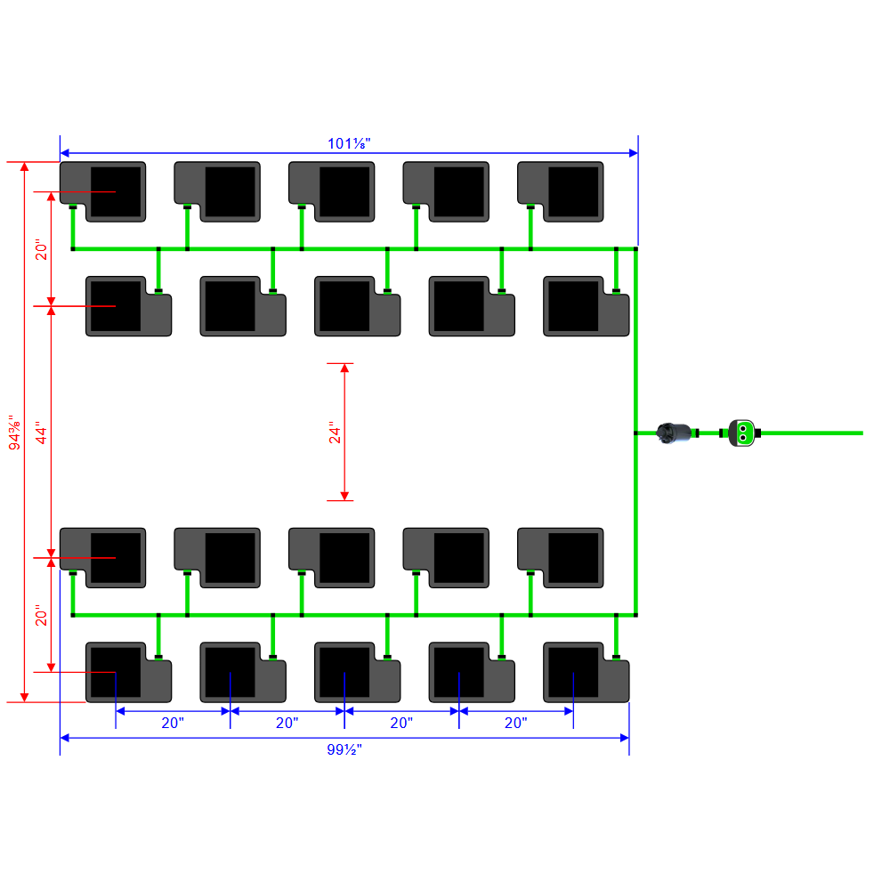 The ALIEN EasyFeed 20 Pot 4 Row Kit is the ultimate solution for efficient, high-yield growing. Available in 4 pot sizes, this system is designed for easy configuration and assembly, featuring advanced setup options to streamline your cultivation process. The layout includes a central aisle between rows, allowing full access to every plant for maintenance and care. Utilizing bottom-feeding technology with scheduled dry-backs, this kit ensures precise hydration and nutrient absorption for optimal plant health. Grow 20 plants to perfection with the ALIEN EasyFeed Kit—maximize your yields with ease!