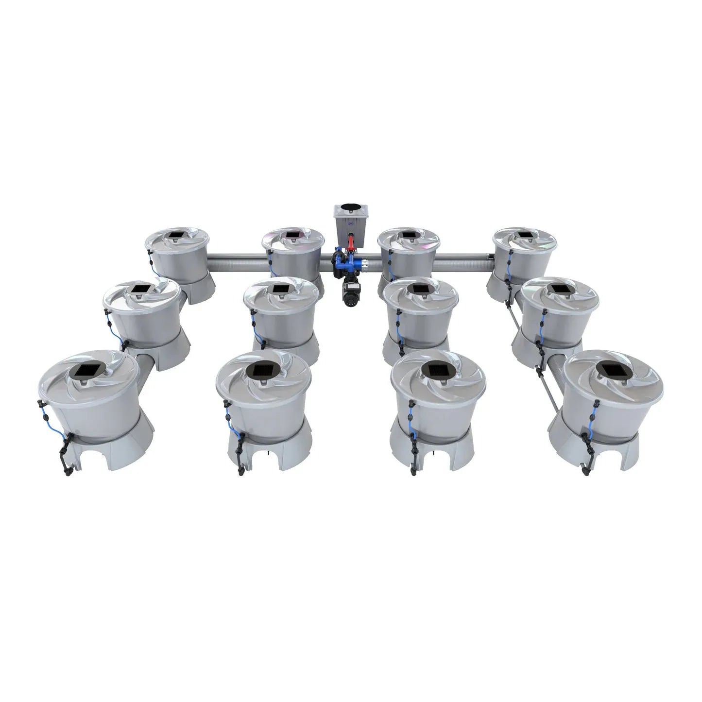 The ALIEN V-SYSTEM 12 Pot 4 Row Kit offers 4 flexible layout options for header and pump placement, allowing you to optimize your grow space. Whether you position the components outside a grow tent/room or keep them compact, this system is designed for easy setup and maximum efficiency. With advanced features and customizable configurations, including the ability to create an aisle for complete plant access, grow 12 plants to perfection in the ultimate recirculating deep water culture system!