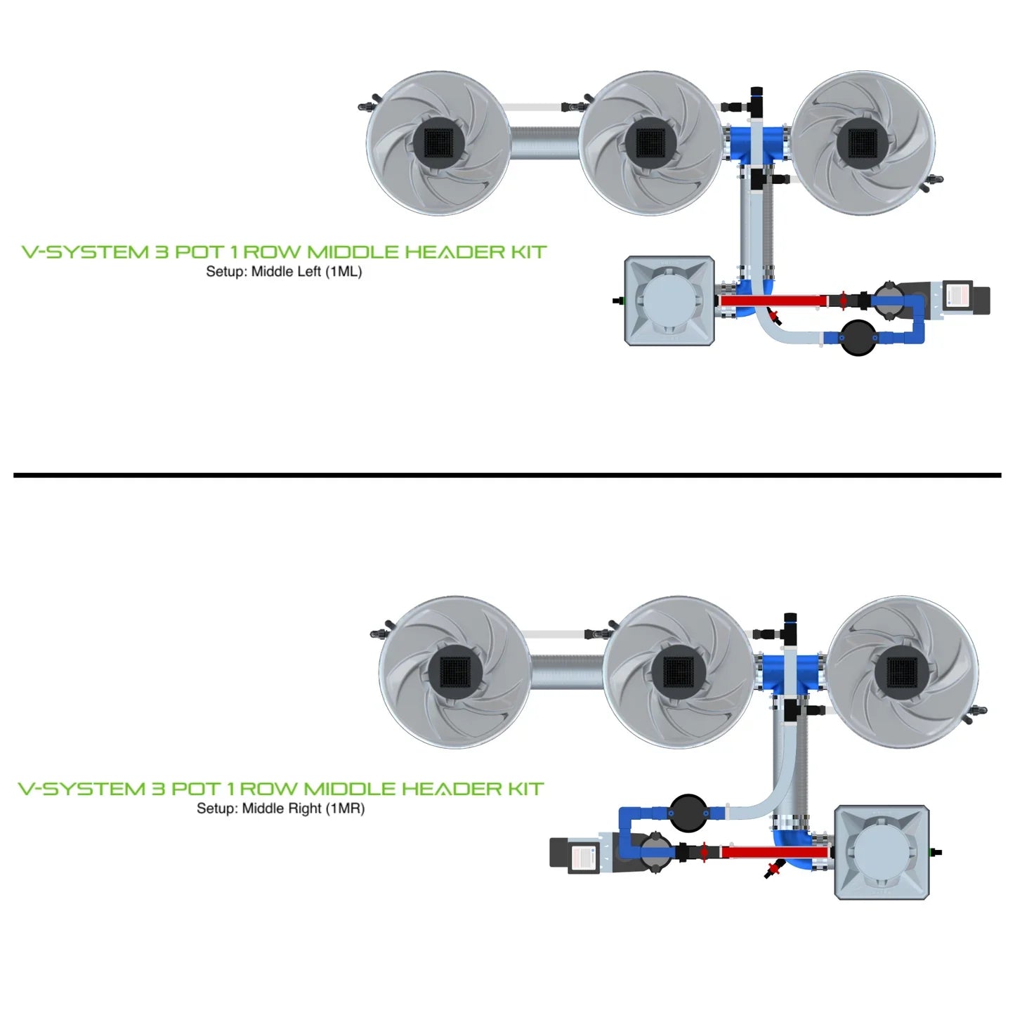 V-SYSTEM 3 Pot 1 Row Middle Header
