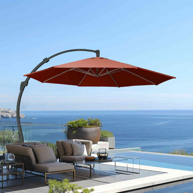 Panama Jack 11.5 Ft Cantilever Sunbrella Terracotta 360 Umbrella w/Movable Base