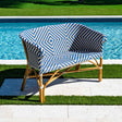 Bring a touch of coastal charm to your indoor or covered outdoor spaces with the Panama Jack Tia Bistro Armchairs. This set of two armchairs is crafted from natural rattan frames and a striking blue and white synthetic weave, creating a perfect blend of durability and style. With their lightweight yet sturdy construction, these chairs are easy to move and ideal for casual dining or lounging in any covered environment. Fully assembled for your convenience, these chairs exude timeless elegance while providing comfortable support for everyday use.