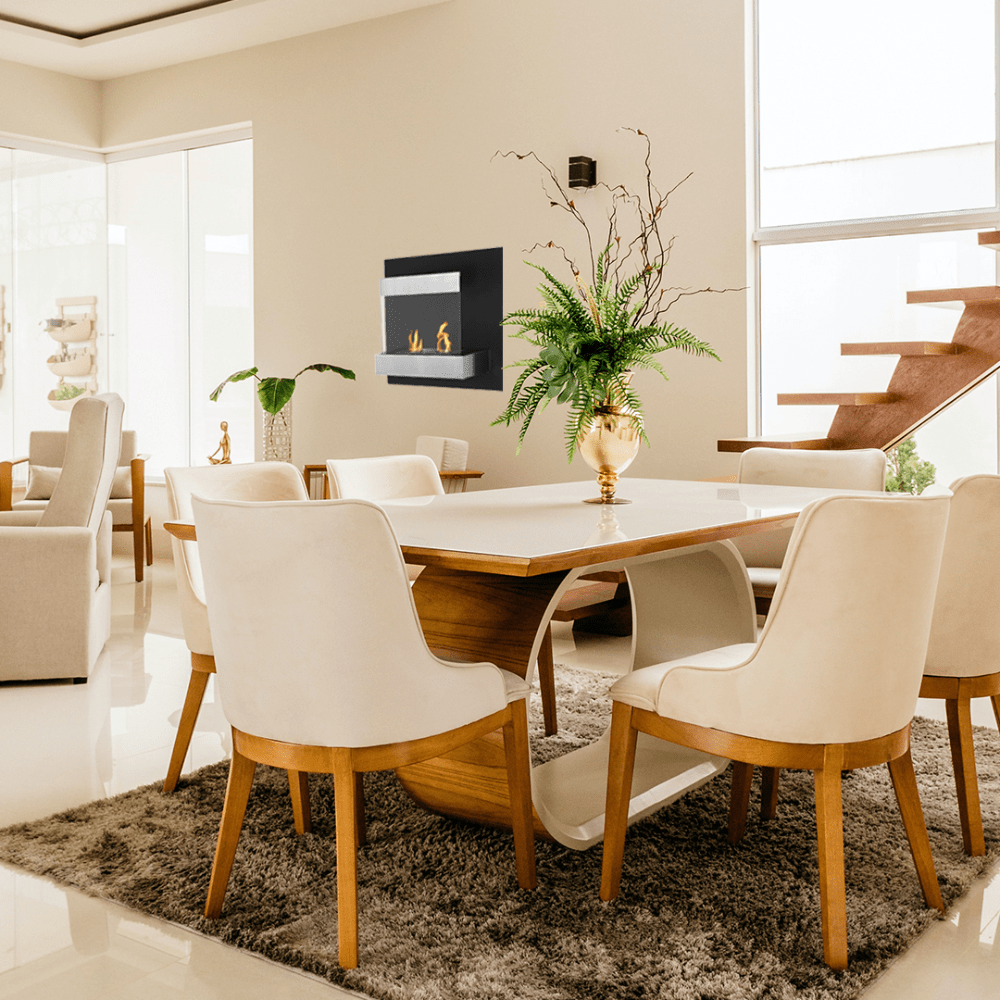 This wall-mounted ethanol fireplace adds a sleek, sophisticated touch while saving valuable floor space. Constructed from high-quality stainless steel with a modern black powder coat, it's built to last, minimizing tarnish over time. Plus, its clean-burning bioethanol fuel delivers beautiful flames without smoke or pollution.