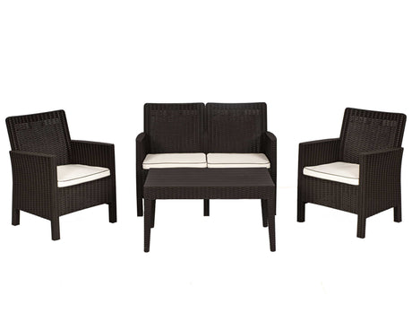 Rainbow Outdoor Nova 4-Piece Settee Set with Loveseat and Cushions-Brown