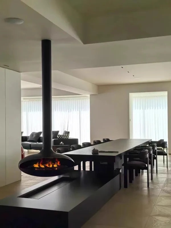 Enjoy the freedom of a full 360° panoramic fire with this suspended UFO fireplace, featuring a seamless rotatable design that allows you to admire the flames from every angle. Finished with imported high-temperature resistant paint, it is eco-friendly, durable, and maintains a smooth, refined texture that resists peeling even under intense heat. Blending modern functionality with elegant style, this fireplace serves as a bold and captivating centerpiece in any room.