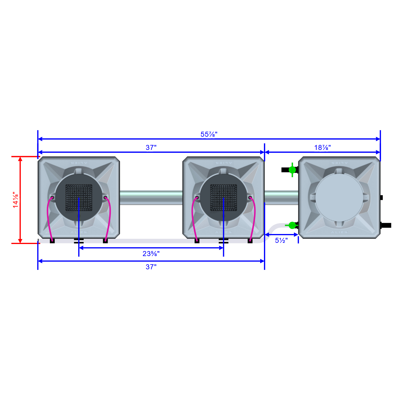 Alien Hydroponics AERO 2 Pot 1 Row Kit