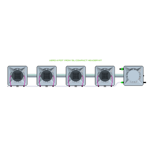 The ALIEN AERO 4 Pot 1 Row Kit offers two pot size options and two header configurations, allowing for a customizable setup. Designed for easy assembly and advanced aeroponic growing, this system lets you cultivate four plants with precision and efficiency.