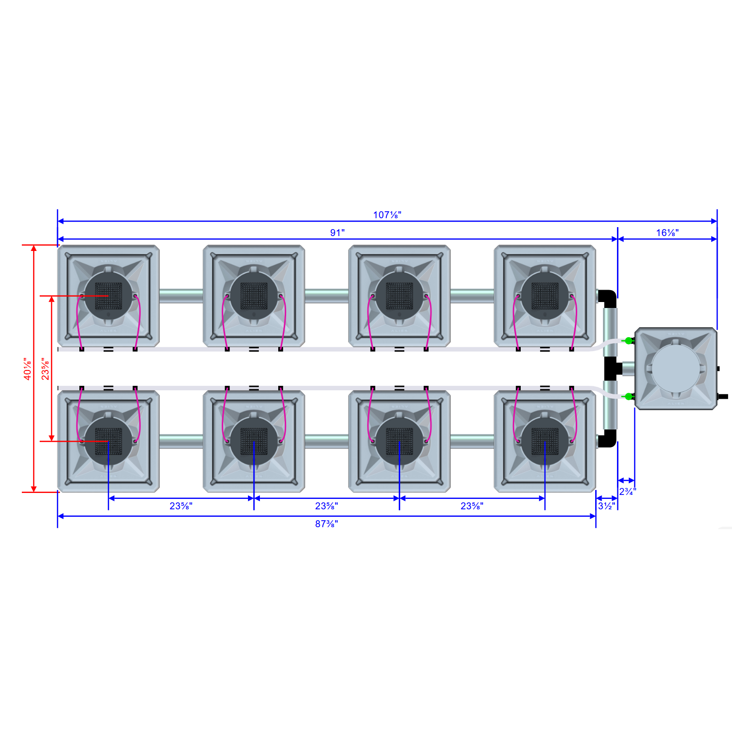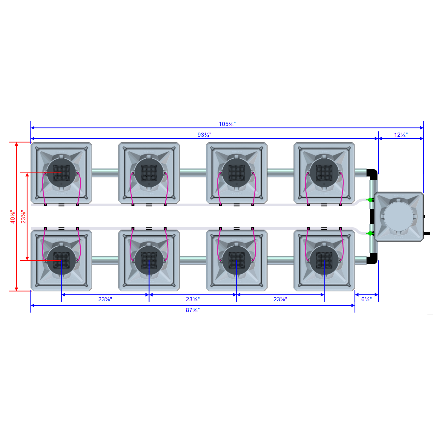 Alien Hydroponics AERO 8 Pot 2 Row Kit