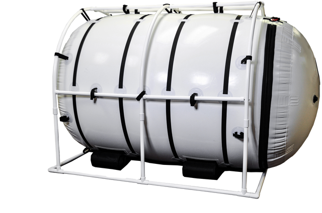 This chamber measures 60" (5 feet) in diameter and 103" (8.5 feet) long; one of the largest mild hyperbaric chambers on the market. We feel that this will give the end user (i.e. clinic) the ability to serve every person needing hyperbaric therapy no matter what their condition is.