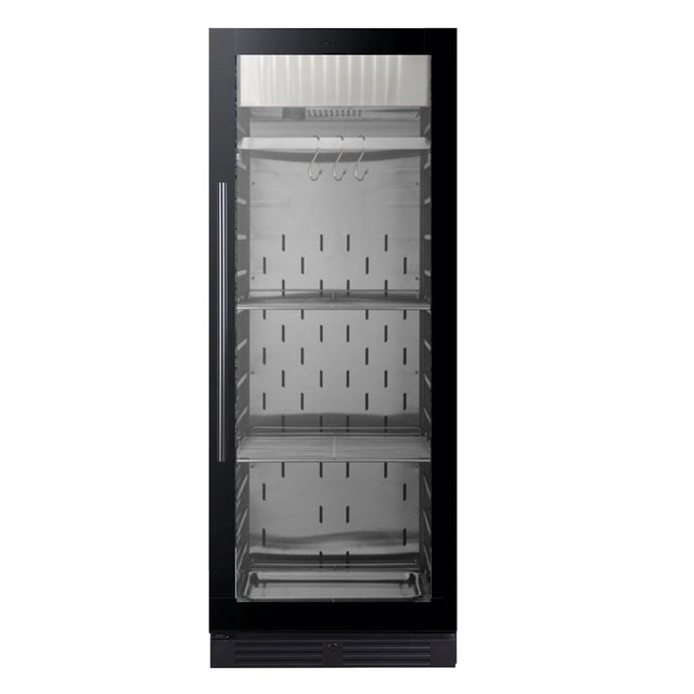 Commercial Capacity: Equipped with multiple stainless-steel shelves and hanging rods, it’s ideal for aging large cuts, subprimals, or charcuterie — perfect for professional kitchens and butchers managing their own aging process.