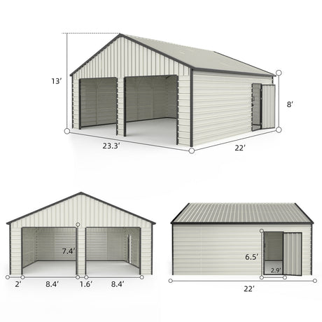 23' x 22' Double Garage Metal Shed with Side Entry Door