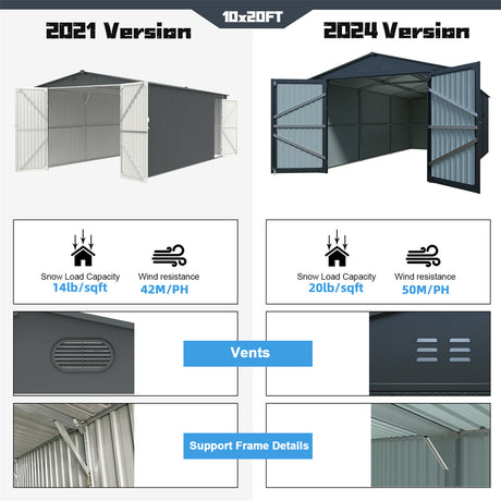 Chery Industrial 10'x20' Plus Upgraded Metal Garage Shed with Double Front Doors, Side Entry Door