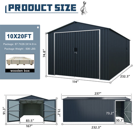 10'x20' Metal Garage Shed with Double Front Doors, Side Entry Door