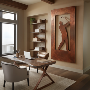A lone golfer mid-swing, The Drive freezes the instant of power and precision as the club arcs toward the horizon. Clean lines and a grounded stance reflect the balance between focus and force that defines the game.