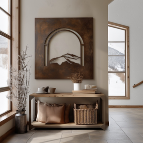 Your custom piece may vary slightly from the images, showcasing its unique character. - Thickness & Depth: Features a 1-inch bent steel border and sits just over 1 inch off the wall