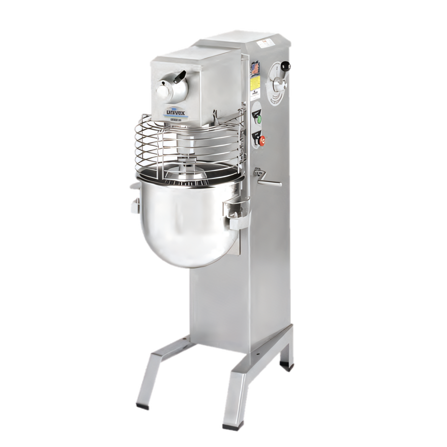 - Operator-first safety – interlock switches disable the mixer if the guard is open or the bowl is not raised.