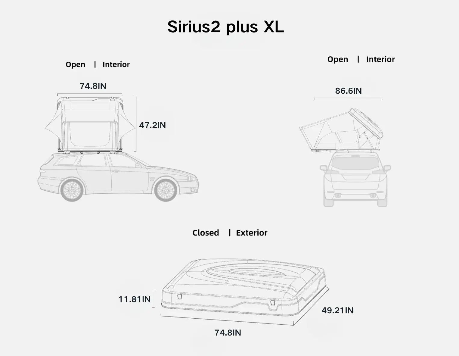 The Naturnest Sirius 2 Plus XL ABS Hard Shell Roof Top Tent elevates family camping with its spacious interior and robust design, perfectly suited for 3–4 adults. Featuring an expanded 74.8‑inch interior width, this rooftop tent gives you ample room to sleep, stretch, and move comfortably — ideal for weekend getaways or extended outdoor adventures.