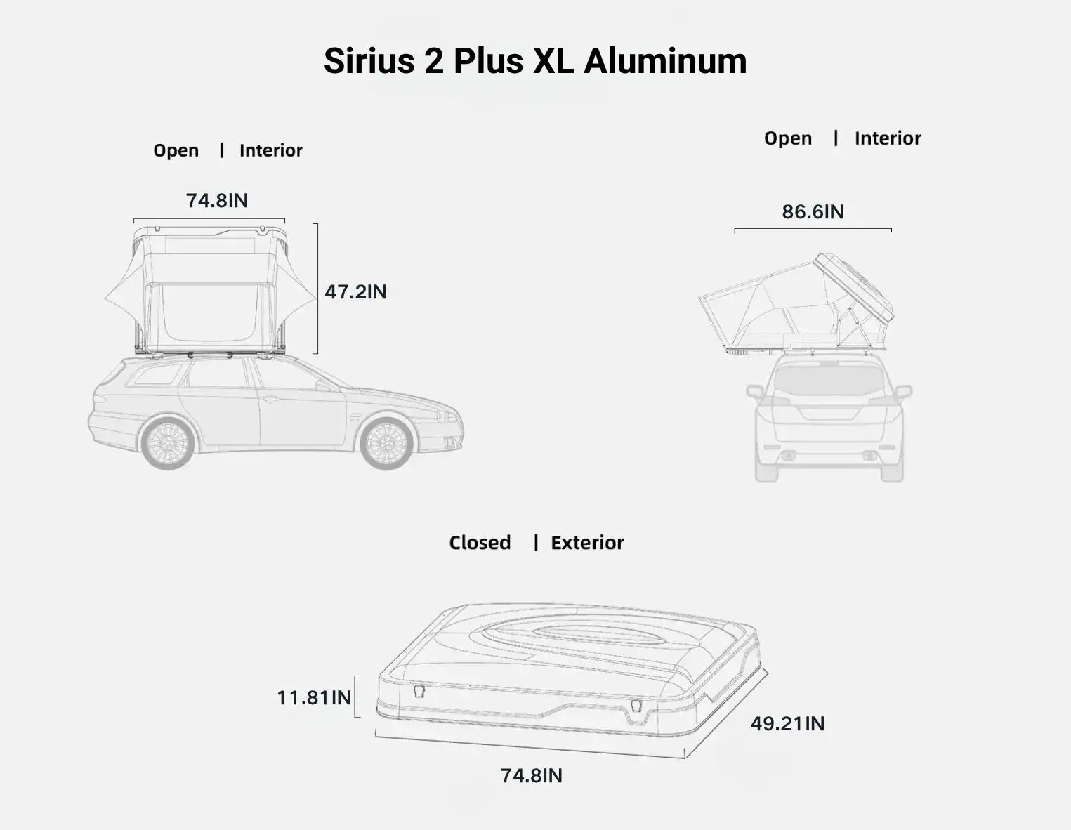 Naturnest Sirius 2 Plus XL Aluminum Clamshell Roof Top Tent