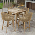 Elevate your outdoor entertaining experience with the Calixto 5-Piece Pub Set—a sophisticated blend of style, durability, and comfort. Featuring handwoven Nigerian Twist in a rich brown finish over a rust-resistant, powder-coated aluminum frame, this set brings refined texture and craftsmanship to any patio or rooftop lounge.