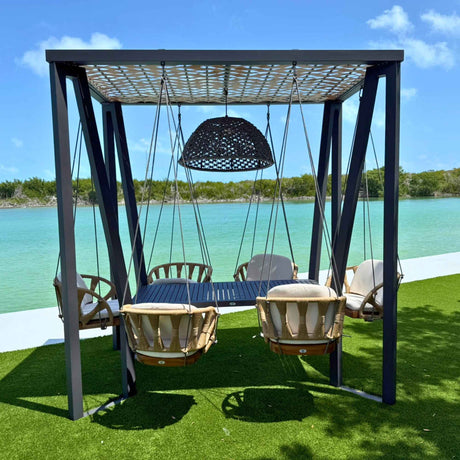 Skyline Design Horizon 8FT Pergola with Lamp, Krabi Hanging Chairs & Aluminum Table