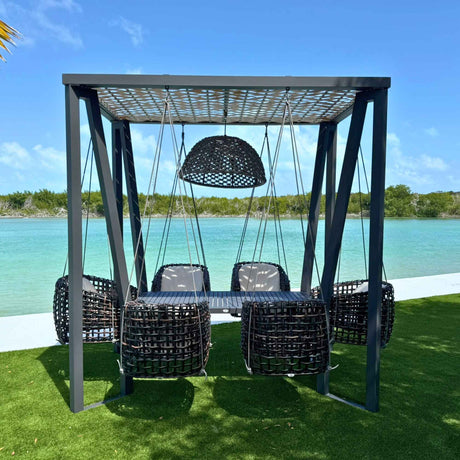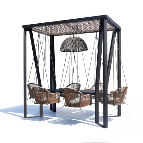 Skyline Design Horizon 8FT Pergola with Lamp, Calixto Hanging Chairs & Aluminum Table